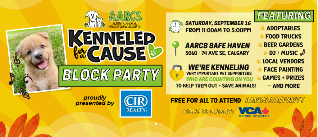 Kenneled for A Cause is happening with the good humans of AARCS – Alberta Animal Rescue Crew Society.